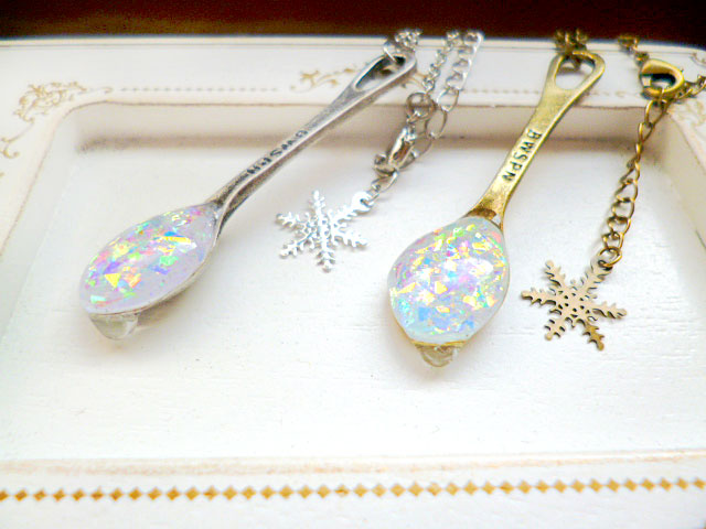 ここからは私のほうの出展物ですが、上でも書いた通り今回はスプーンモチーフのネックレスが多めです。