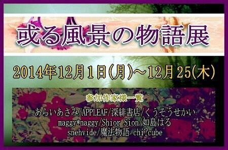 12月企画展「或る風景の物語展」開催期間は2014年12月1日(月)~12月25(木)ですが、最終日は16時までとのことです。