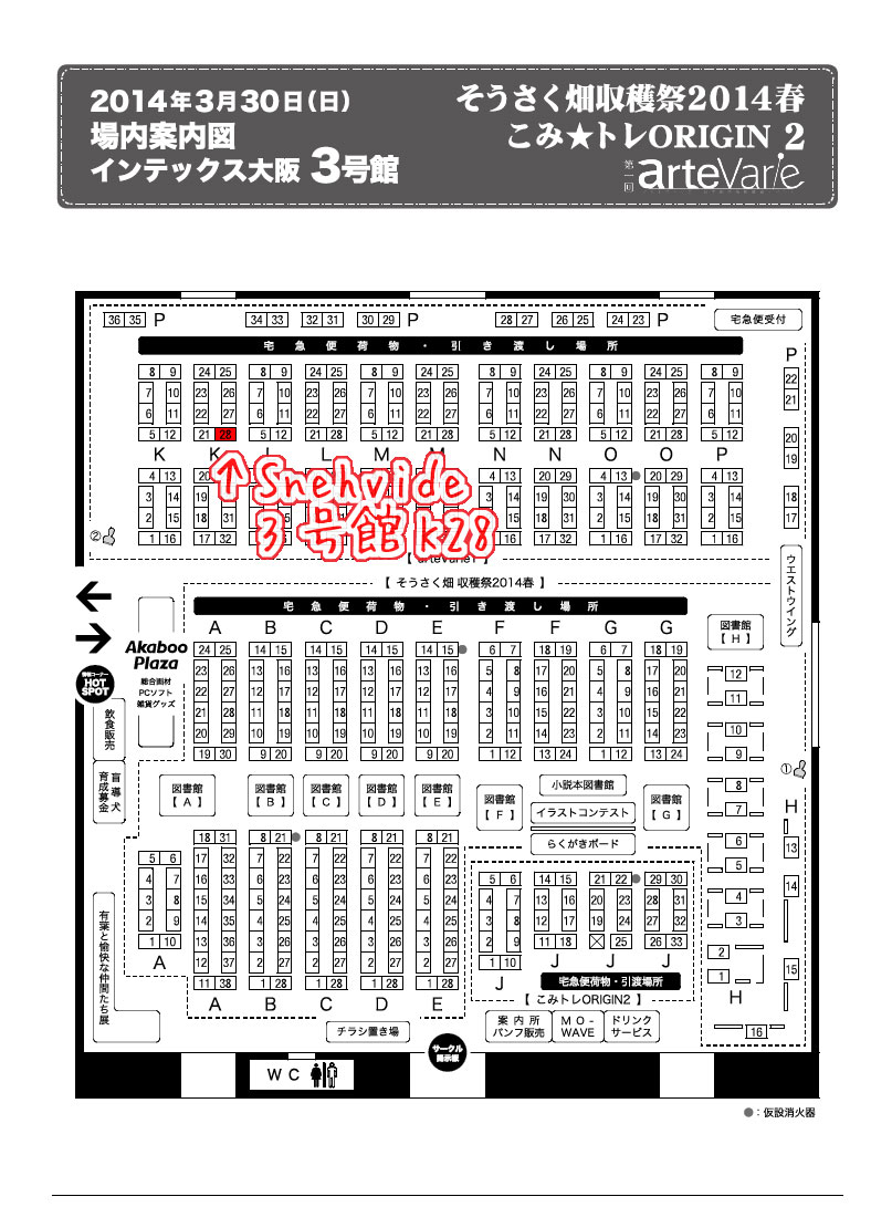 スペースは 3号館K28 、入口から左のほうに行ったところです。